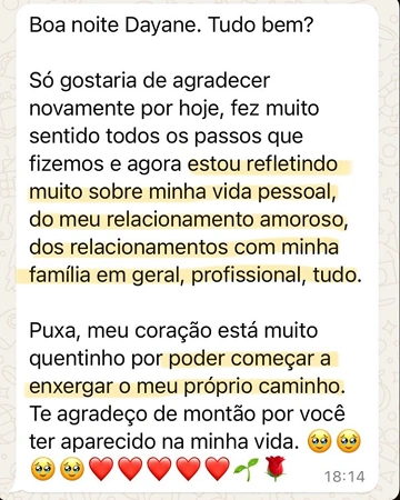 O processo tem seu tempo pra acontecer, pra você ganhar clareza, se apropriar das suas escolhas e construir, comigo, uma direção que faça sentido de verdade.