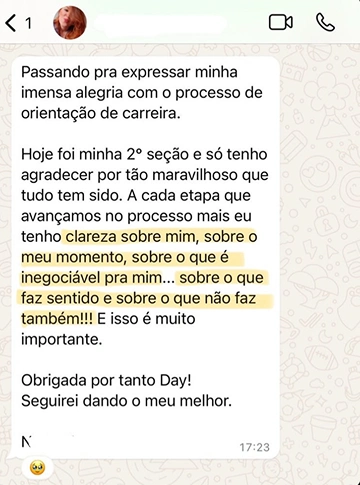 O processo é desenhado pra te trazer clareza e te ajudar a tomar decisões com mais segurança. Mas também é verdade que cada pessoa tem seu tempo. Se a decisão, de fato, não acontecer, você vai sair desse processo, no mínimo, muito mais consciente sobre quem você é, o que faz sentido pra sua vida e quais critérios vão te ajudar a construir essa escolha – no seu tempo.