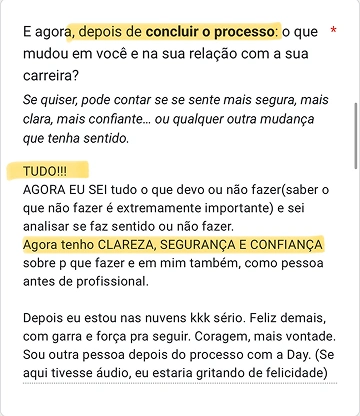 “Agora tenho CLAREZA, SEGURANÇA E CONFIANÇA. […] Sou outra pessoa depois do processo com a Day.”